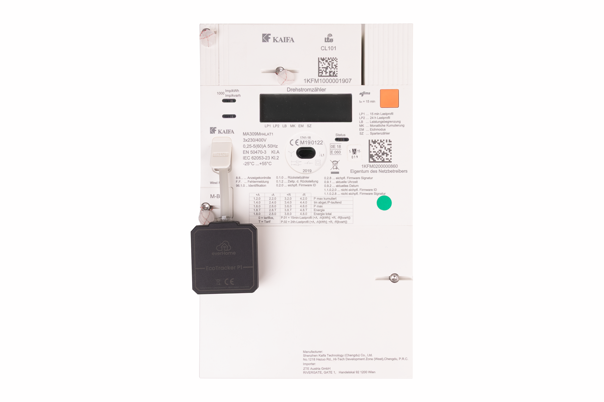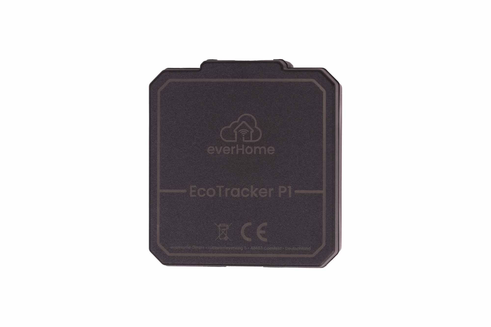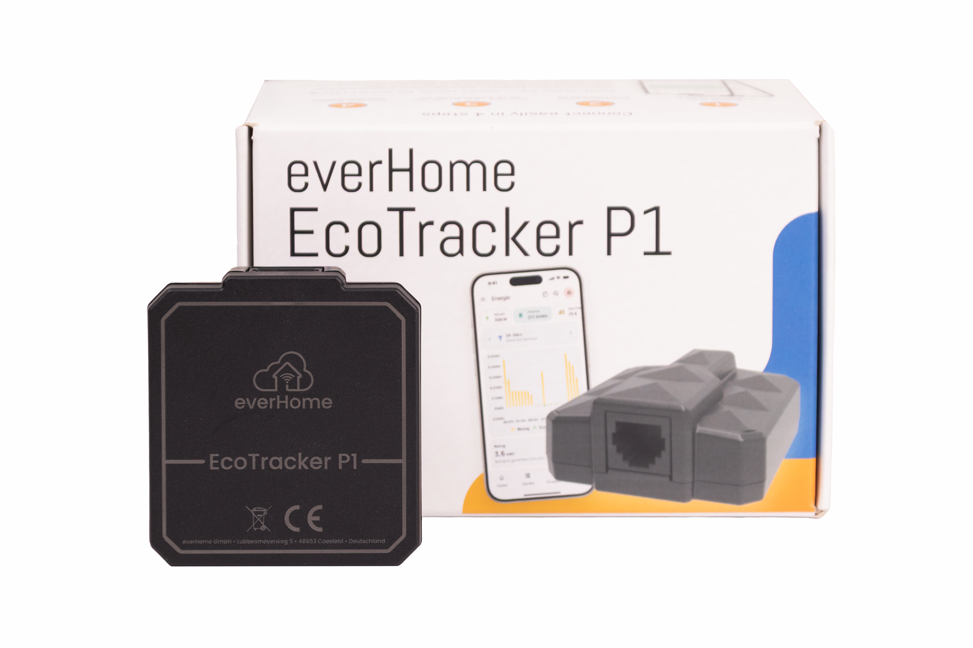 EcoTracker P1 mit Verpackung EcoTracker P1 Vorderansicht EcoTracker P1 Vorderansicht (schräg) EcoTracker P1 Oberseite EcoTracker P1 verbundenProduktinformationen zum EcoTracker