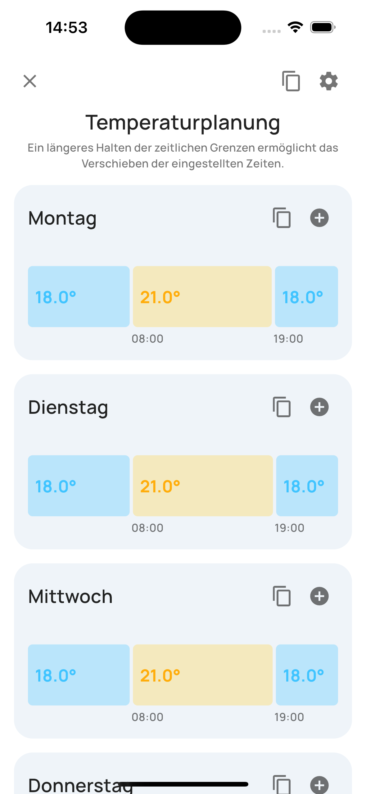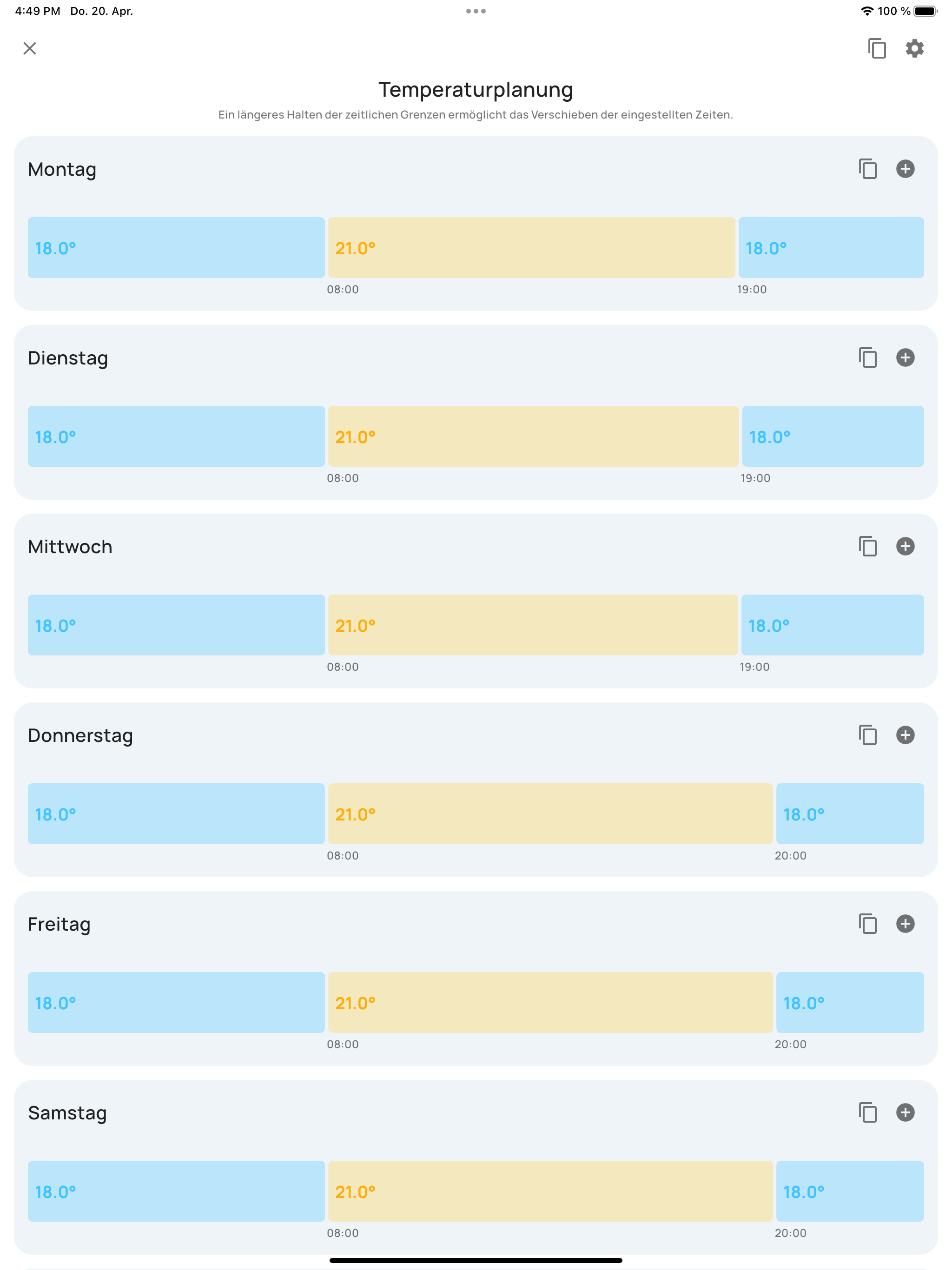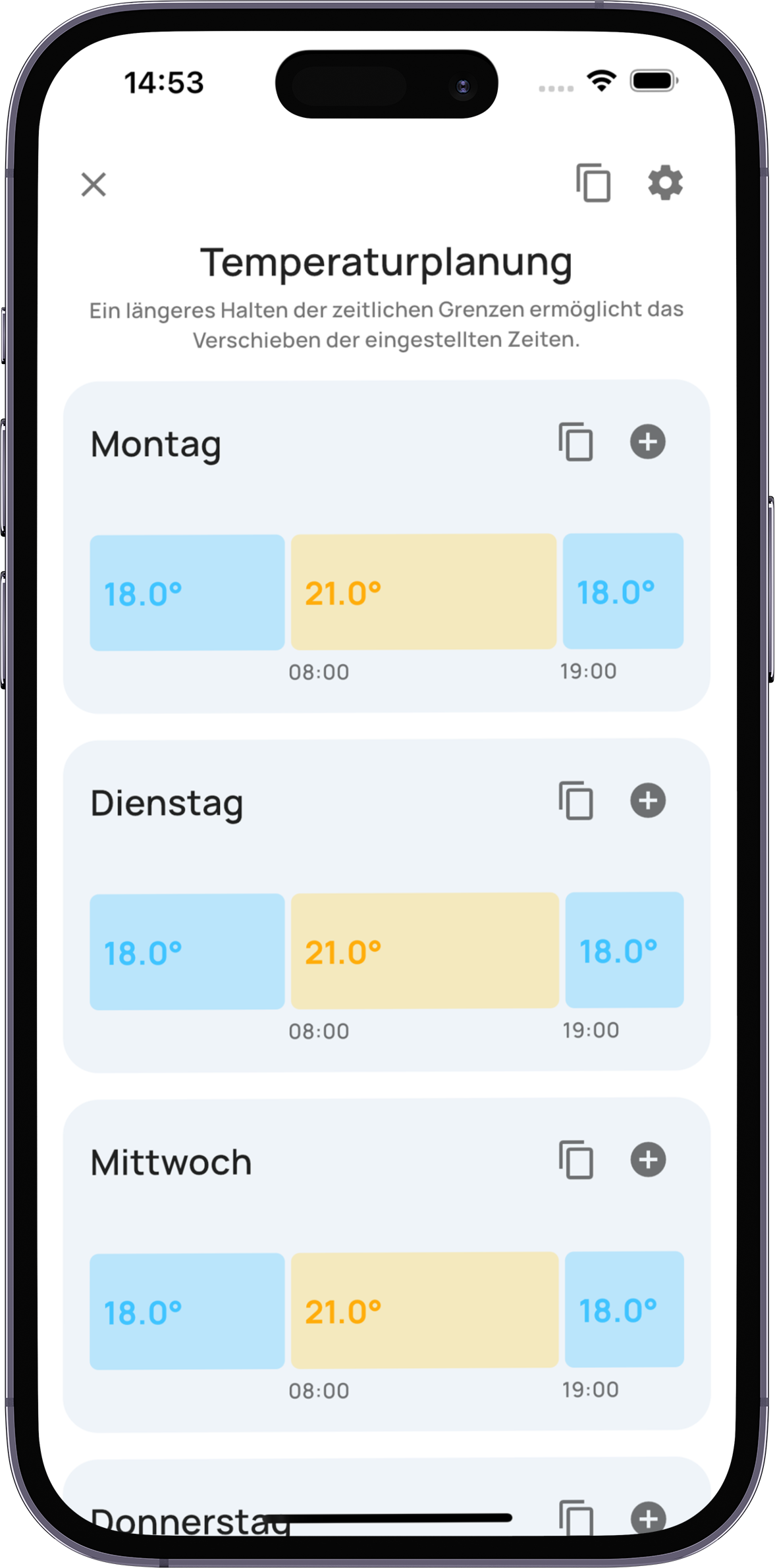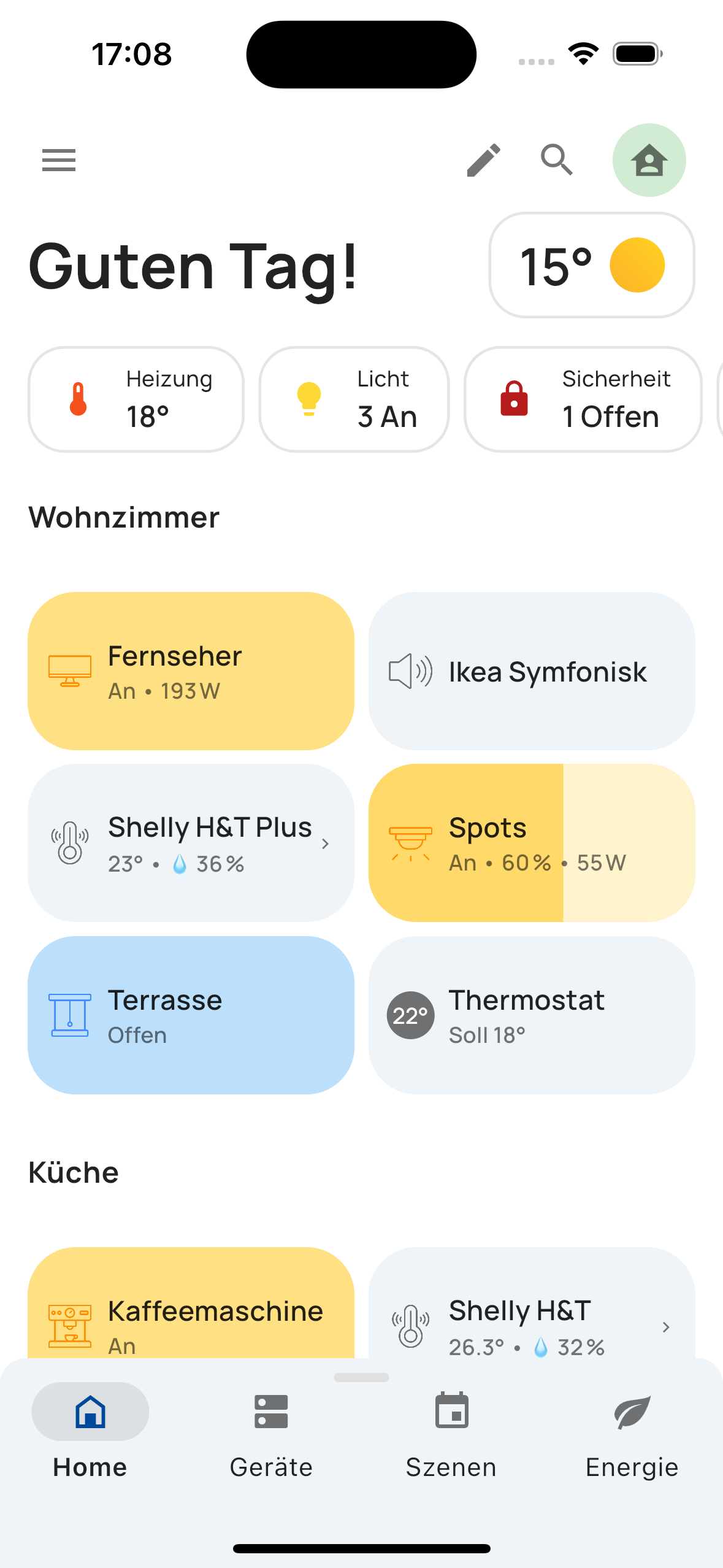 Smartphone Smartphone Smartphone, Tablet, Laptop Tablet, iMac Tablet, Monitor Smartphone, Tablet, Watch Tablet Tablet Tablet Tablet Tablet Tablet Lichtsteuerung Rollladen, Jalousien, Raffstores, Textilscreens und Markisen Heizungssteuerung Sicherheit Anwesenheitserkennung Lichtsteuerung Rollladen, Jalousien, Raffstores, Textilscreens und Markisen Heizungssteuerung Sicherheit AnwesenheitserkennungInformationen zu den einzelnen Funktionsbereichen