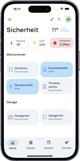 Schliesse und Öffne automatisch alle Rollläden, wenn niemand zuhause ist. Lasse dich über Zwischenfälle benachrichtigen. Sensoren überwachen rund um die Uhr dein Heim. Und alarmieren dich, wenn etwas geschieht.